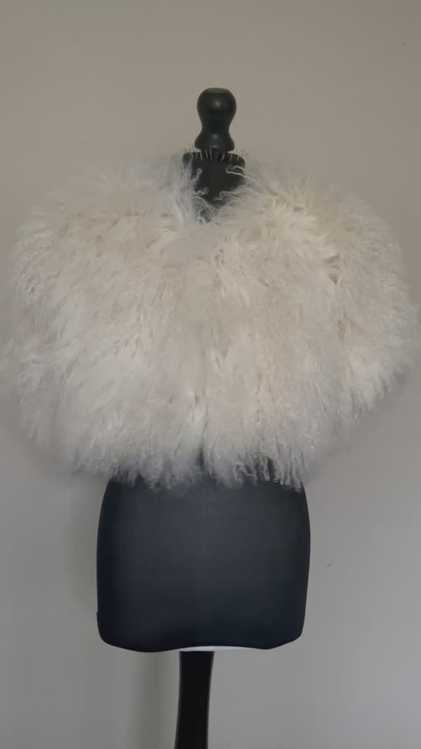 Cream Mongolian Fur Cape Cropped Jacket