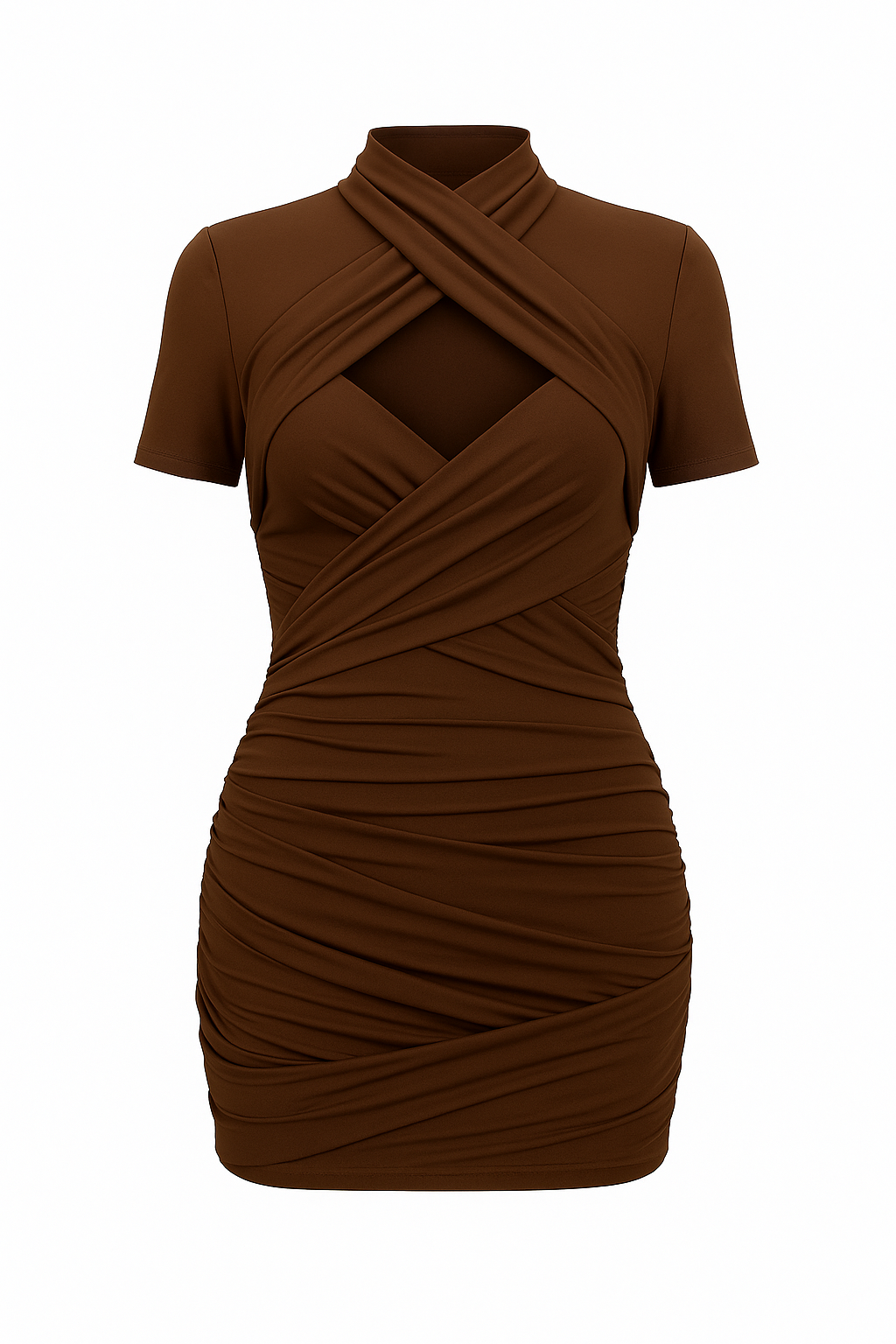 Slip into our “It’s a Wrap” mini and feel instant confidence. Seamless, ruched bandaging sculpts and hugs your curves, while the diamond-shaped front keyhole and criss-cross neckline add just the right amount of drama. Shoulder pads and a back zipper ensure a flawless fit, letting you move with ease and look effortlessly polished.
