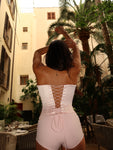 Pink satin ruched cup bustier top with side zip and adjustable tie back, slightly small sizing if you’re unsure size up 🩷