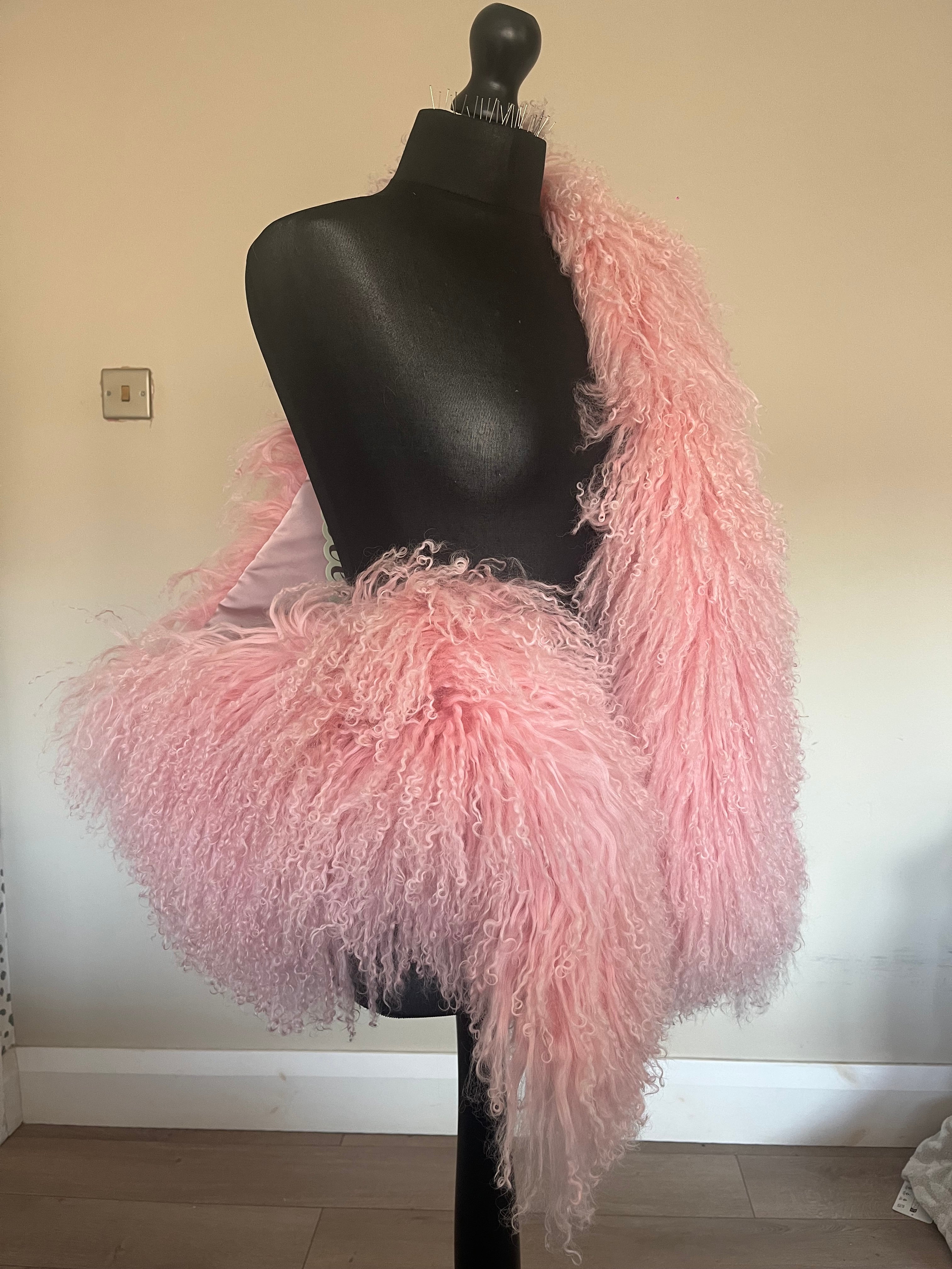 One side Mongolian fur, the other a silk blend. Fitted with our signature pockets to keep hands warm on your classy evening stroll 🤎
